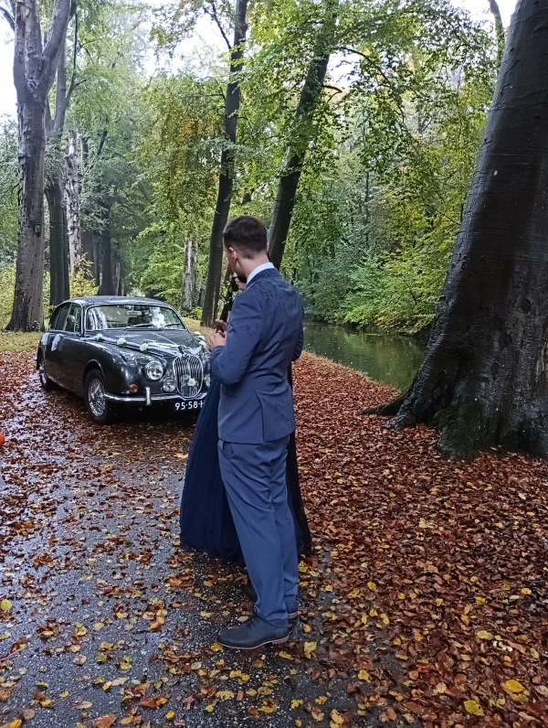 Ben je op zoek naar een unieke Oldtimer om jullie trouwdag nét dat extra bijzondere tintje te geven, dan zit je hier goed. Deze Jaguar MK2 3.4 liter is een echte klassieker uit 1968. In deze fraaie, exclusieve auto zullen jullie comfortabel en professioneel worden vervoerd op jullie trouwdag. De wagen is met zorg gerestaureerd en is zowel van binnen als van buiten in zeer goede staat. Dankzij de vier deuren biedt deze auto een royale instap achterin.